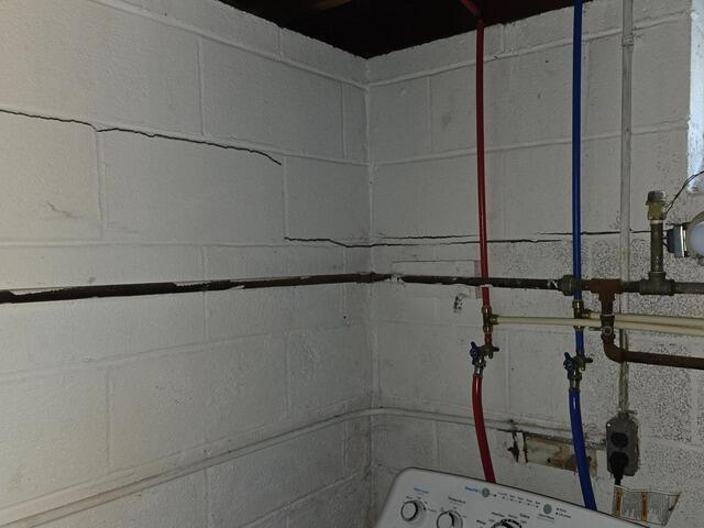 CarbonArmor straps were applied to this cracking, shifting wall in order to stabilize it. CarbonArmor utilizes high-strength carbon straps bonded directly to the wall using industrial epoxy, creating a 10x stronger-than-steel reinforcement.